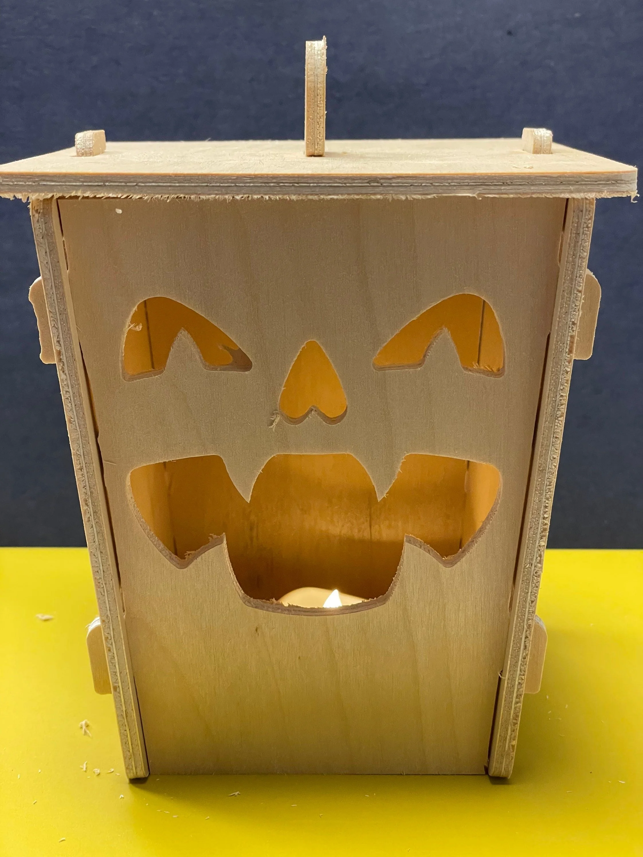 You’ll quickly assemble the seven carved pieces of maple plywood and add the included tea light. It’s that easy. The light has a timer function so you only need to turn it on once this season, it will power down on its own, and then light up again the next night. Easy.